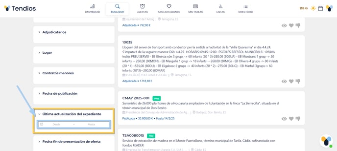 Cómo buscar licitaciones filtrando por la última actualización del expediente