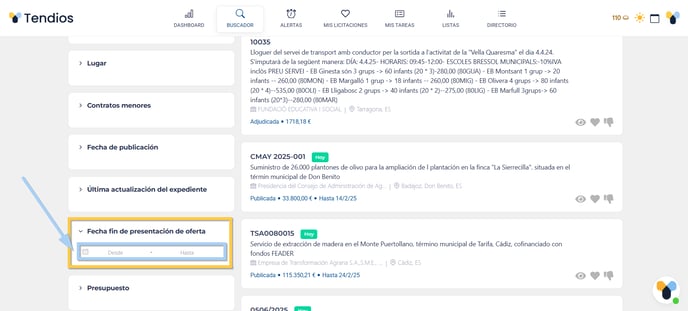 Cómo buscar licitaciones filtrando por la fecha fin de la publicación de la oferta