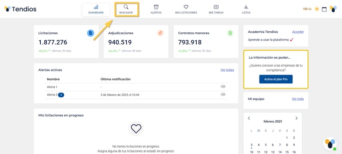 Haz click en la pestaña de Buscador situado en la parte de arriba.