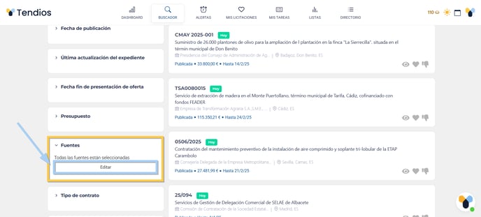 Ya puedes utilizar el buscador. Solo te aparecerán aquellas licitaciones cuyas fuentes sean las que hayas determinado.