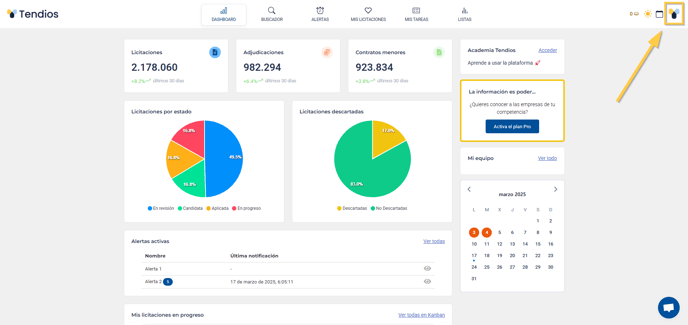 Haz clic en el icono de tu foto de perfil situado arriba a la derecha.