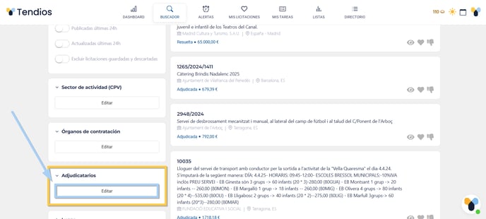 Cómo buscar licitaciones filtrando por adjudicatarios