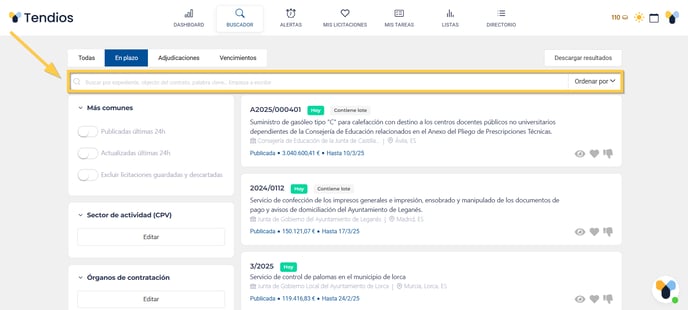 Consejo: Recomendamos escribir el expediente, el objeto del contrato, palabras clave, etc.