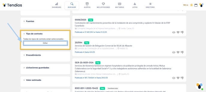Filtra licitaciones según el tipo de contrato y optimiza tu búsqueda