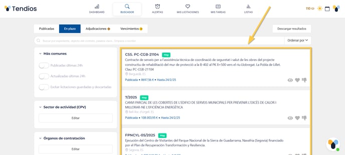 Cómo buscar licitaciones filtrando por las que están en plazo