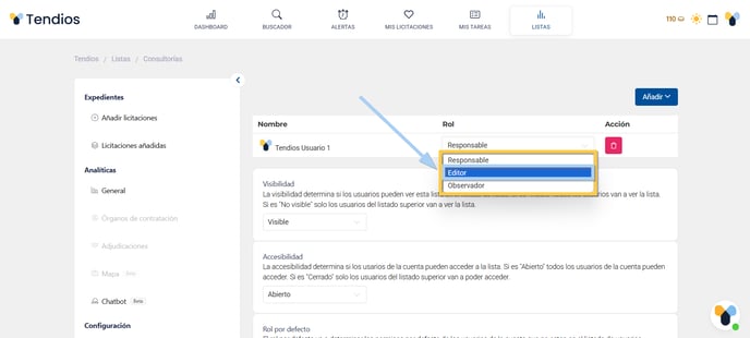 Editor: Permite al respectivo usuario ver resultados y editar esta lista. Para seleccionar este rol haz clic en el botón Editor.