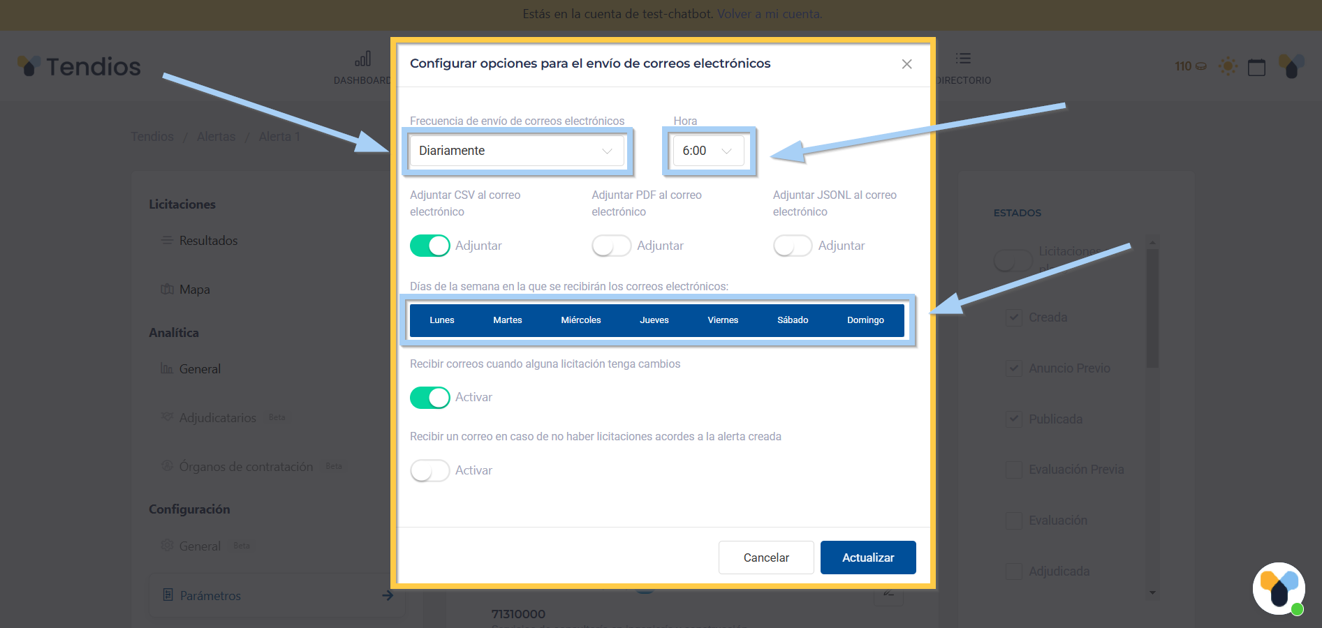 Selecciona aquella alerta en la que quieras cambiar la frecuencia de los emails.
