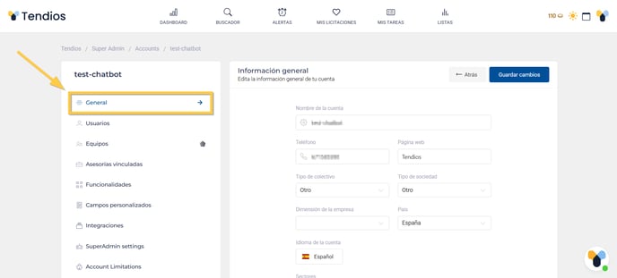Haz clic en el botón de General, situado en el menú de la izquierda.