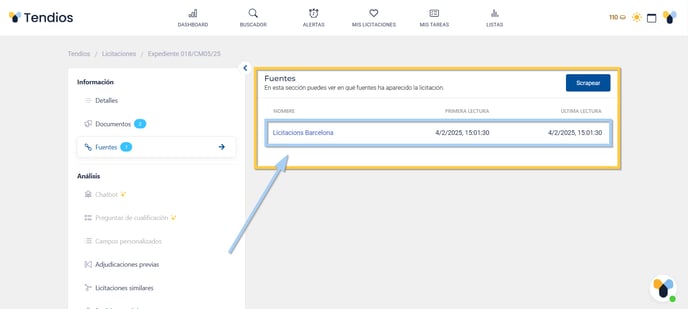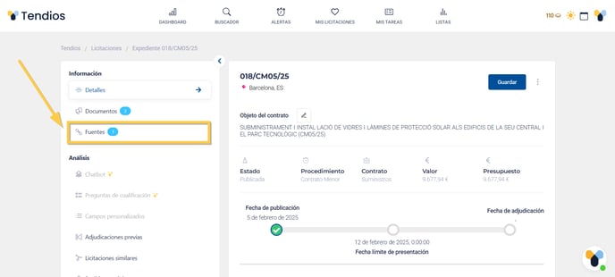 Ya puedes consultar todas las fuentes de esta licitación. Si haces clic en una fuente serás redirigido a su página web.