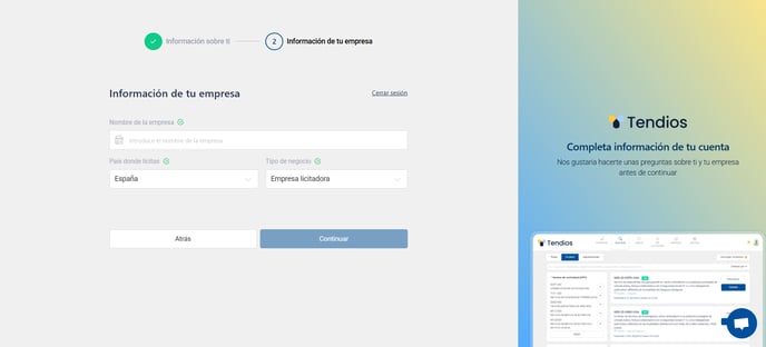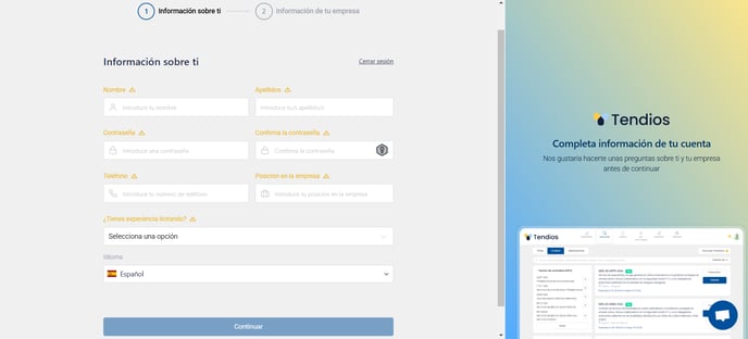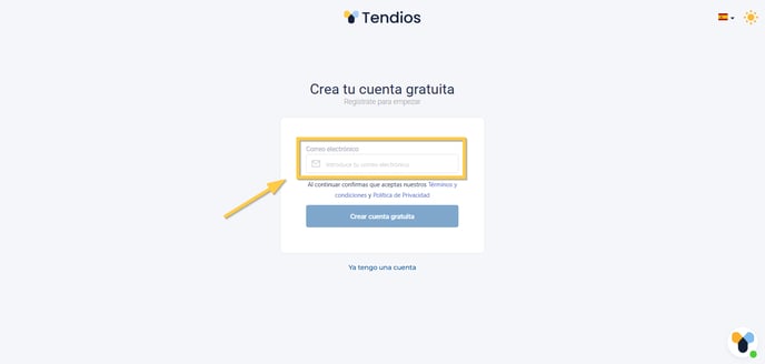 Para comenzar, ve a la página principal de Tendios y haz clic en el botón Empieza gratis ubicado en la parte superior derecha.