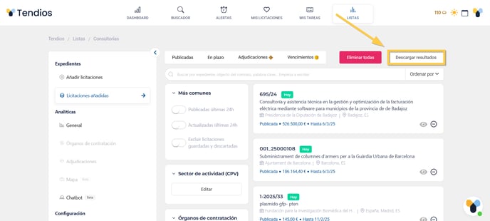 Exporta la información clave de las licitaciones en tu lista a un archivo para un análisis y seguimiento más detallado