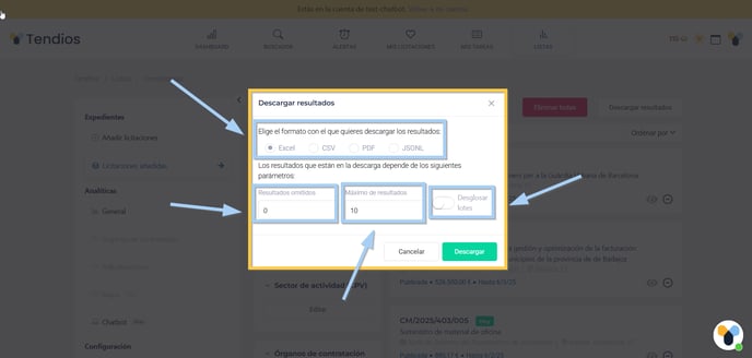 También puedes seleccionar si deseas omitir alguna licitación, si deseas imponer un limite de licitaciones en el archivo o si deseas desglosar los lotes.
