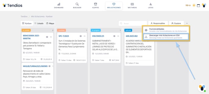 Cómo descargar todas mis licitaciones guardadas en CSV
