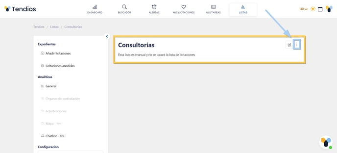 Haz clic en el icono de de los tres puntos situado a la derecha del nombre de tu lista.