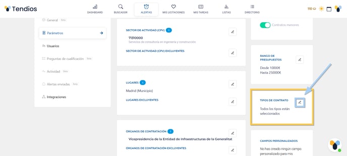 Refina tus alertas filtrando por tipos de contrato para recibir solo las licitaciones que se ajusten a tus necesidades