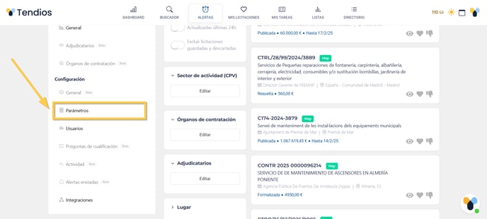Haz clic en la pestaña Parámetros situada en el menú de la izquierda.