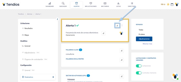Haz clic en el icono de Editar situado a la derecha del nombre de la alerta.