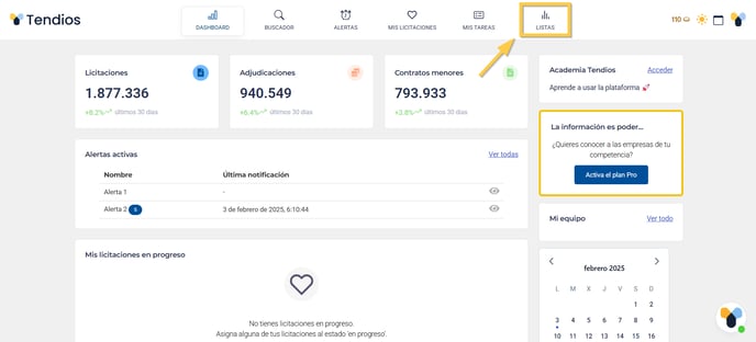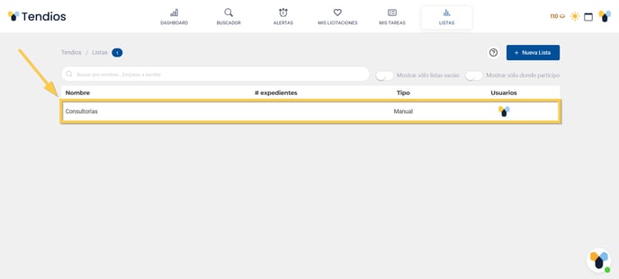 Haz clic en la pestaña Listas, situado arriba a la derecha.