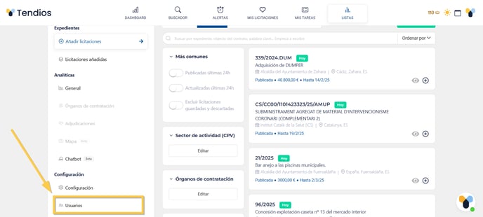 Haz clic en la pestaña Usuarios situada en el menú de la izquierda.