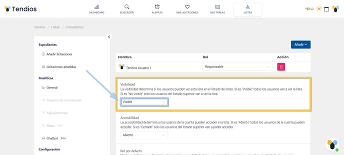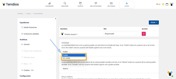 • Visible: Haz clic en el botón Visible si quieres que todos los usuarios de la cuenta puedan ver esta lista en el listado de listas.