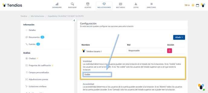 Configura los permisos para que todos los usuarios de tu equipo puedan visualizar la licitación