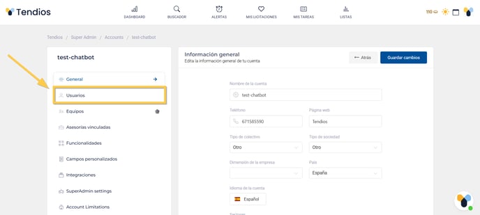 Haz clic en el botón de Usuarios, situado en el menú de la izquierda.