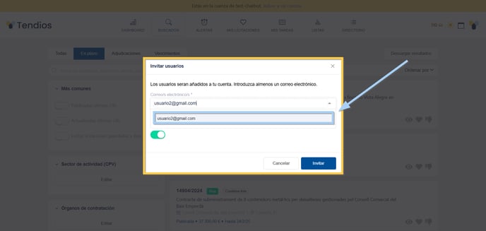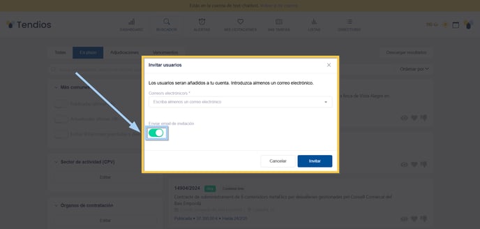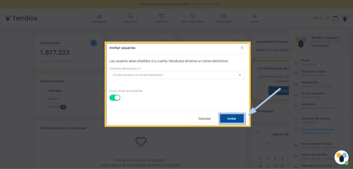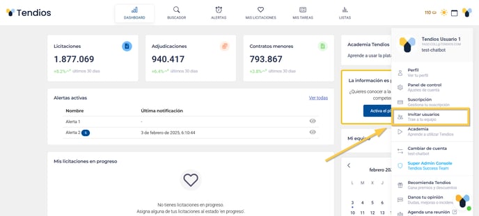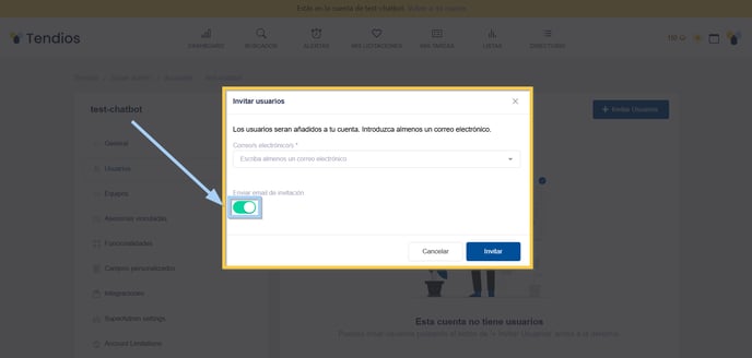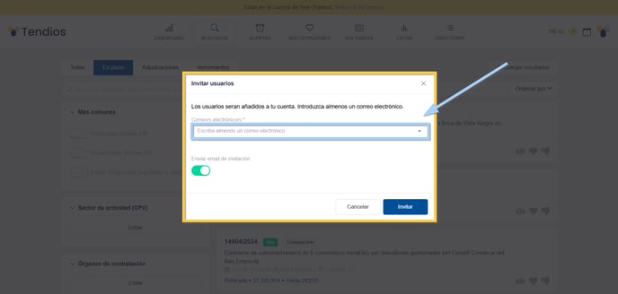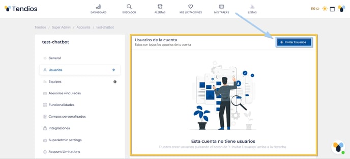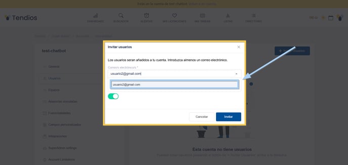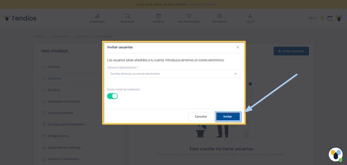 Hay dos opciones para invitar usuarios a tu cuenta de Tendios.
