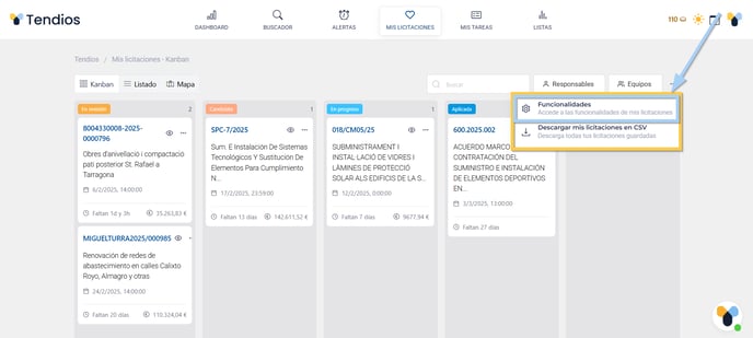 Desde el Kanban, haz clic en el icono de los tres puntos situado arriba a la derecha.