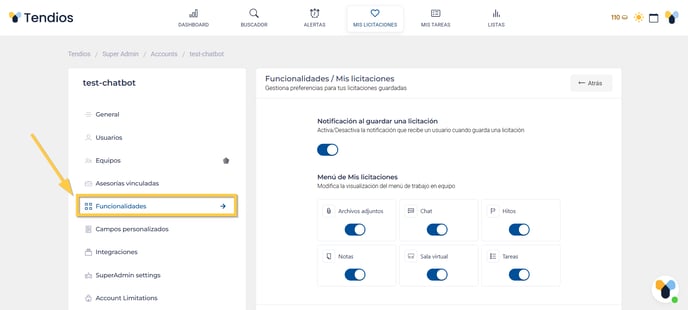 Asegurate de que estas en la pestaña Funcionalidades situado en el menú de la izquierda.