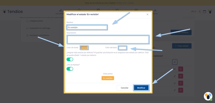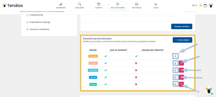 Haz clic en el icono de Editar de aquella columna (estado) que quieras modificar.