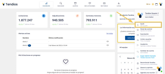 Haz clic en la pestaña Perfil del menú desplegable.