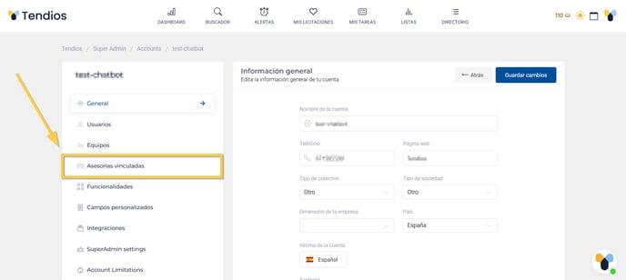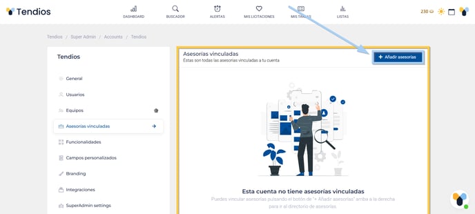 Haz clic en la pestaña Asesorías vinculadas del menú de la izquierda.