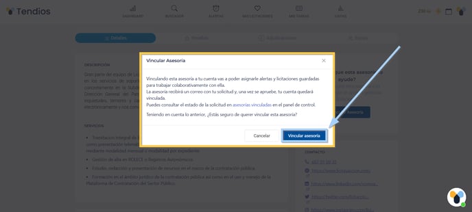 Haz clic en el botón azul Vincular asesoría para confirmar que quieres vincularte con esta consultoría.