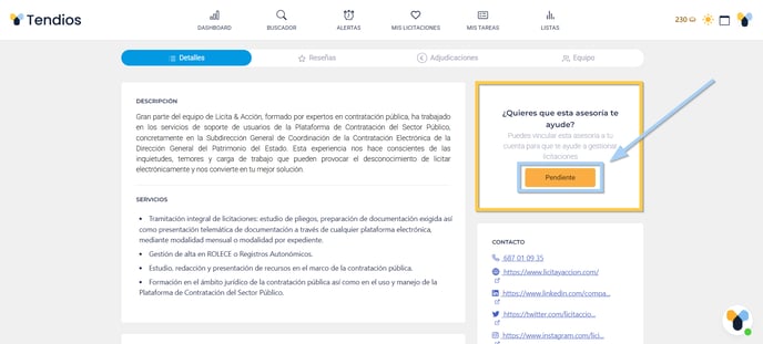 Verás que en el botón anterior ahora pone Pendiente. Esto significa que ya se le ha enviado un correo electrónico a la consultoría con tu solicitud. Una vez la aprueben, quedarás vinculado con ellos. Ahora solo tienes que esperar a que te contacten.