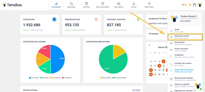 Pulsa en la pestaña Panel de control del desplegable de la derecha.