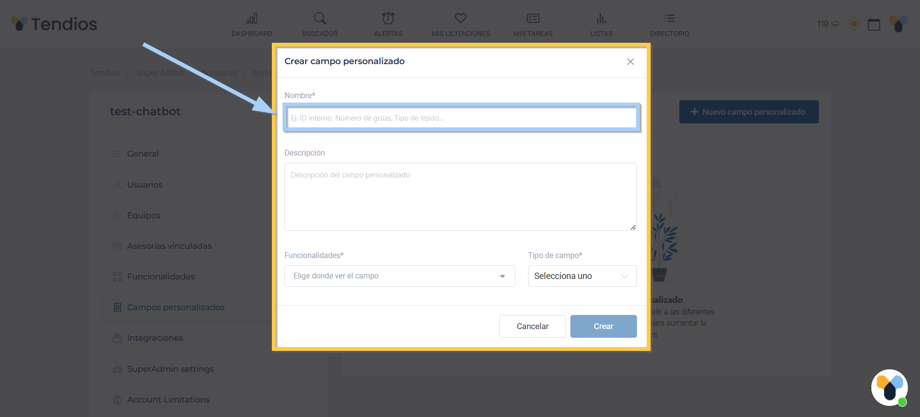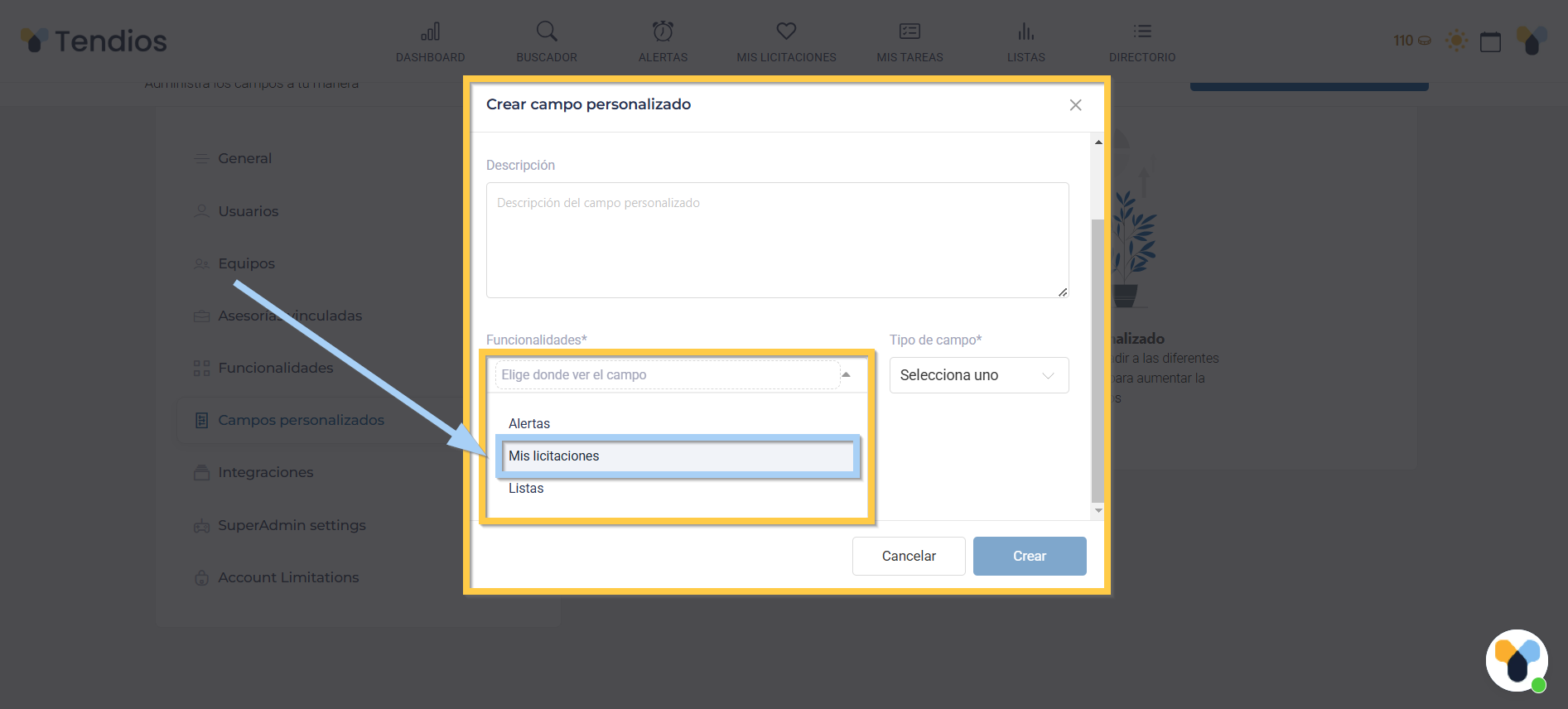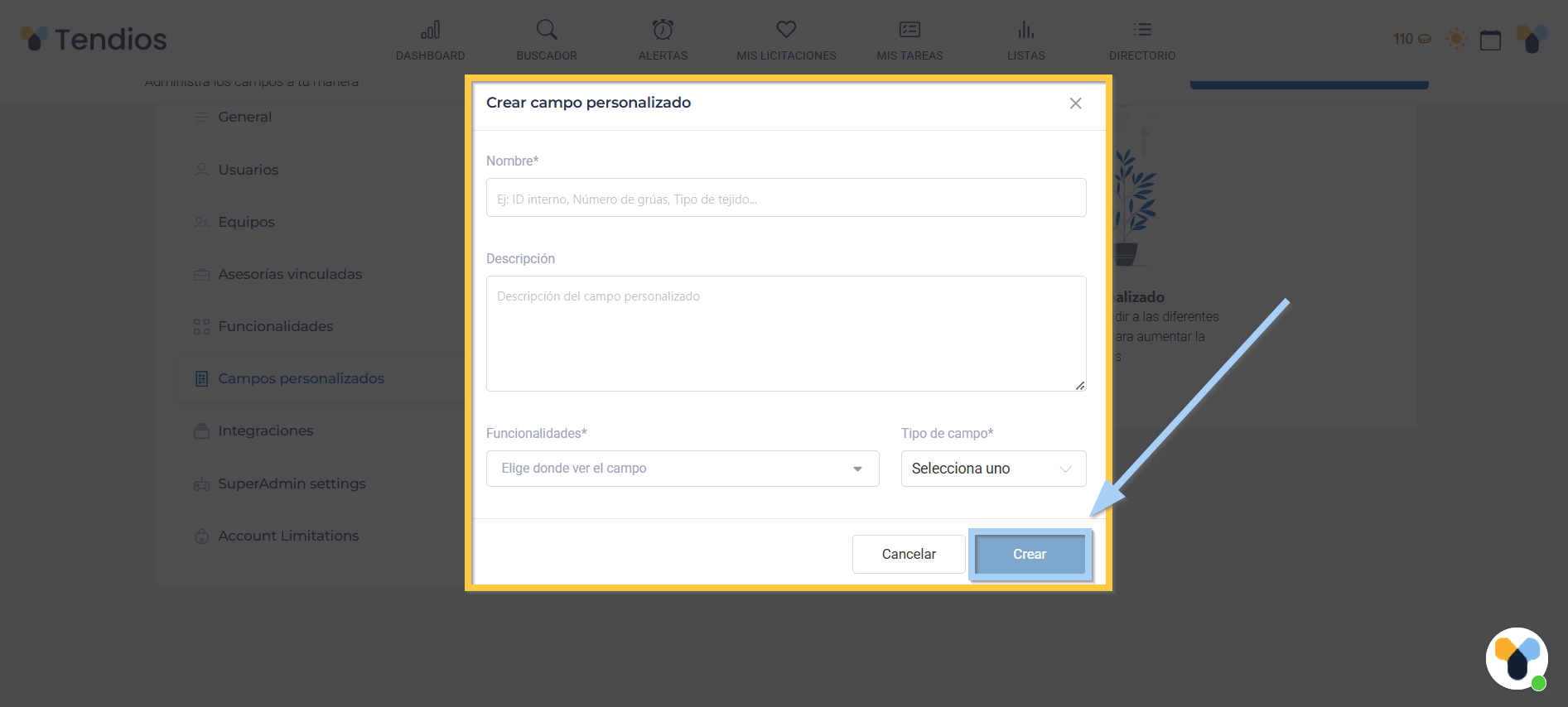 Optimiza la gestión de licitaciones creando y configurando campos personalizados con IA en Tendios